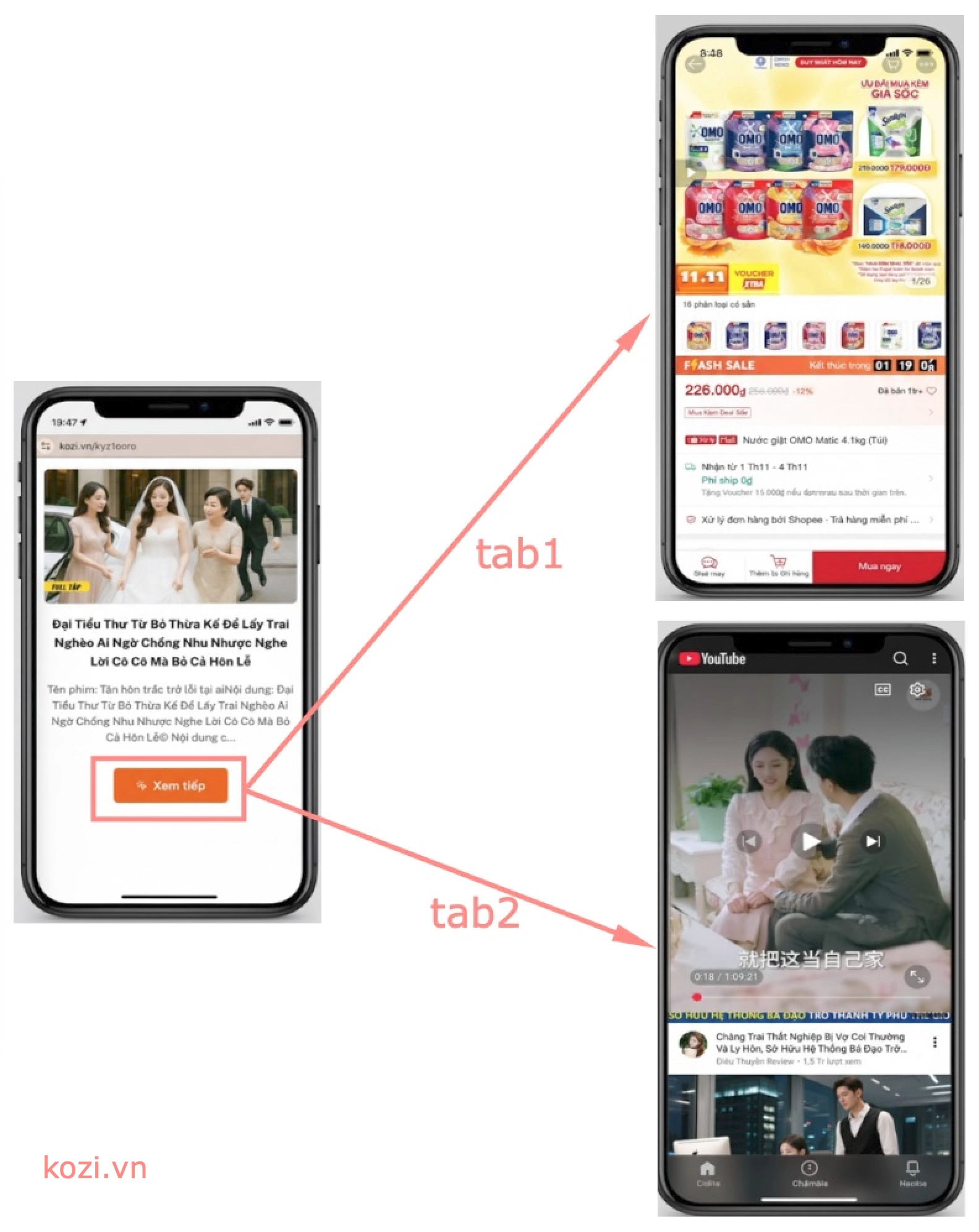Bạn đang bỏ lỡ cơ hội vàng kiếm tiền thụ động vì chỉ chèn được một link duy nhất? Kozi.vn là giải pháp "một mũi tên trúng hai đích" giúp bạn mở đồng thời Link Đích và Link Ads/Affiliate ở hai tab khác nhau.