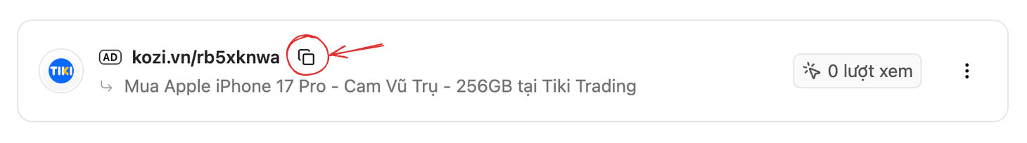 - Chia sẻ và Theo Dõi: Copy Shortlink vừa tạo và theo dõi hiệu suất.